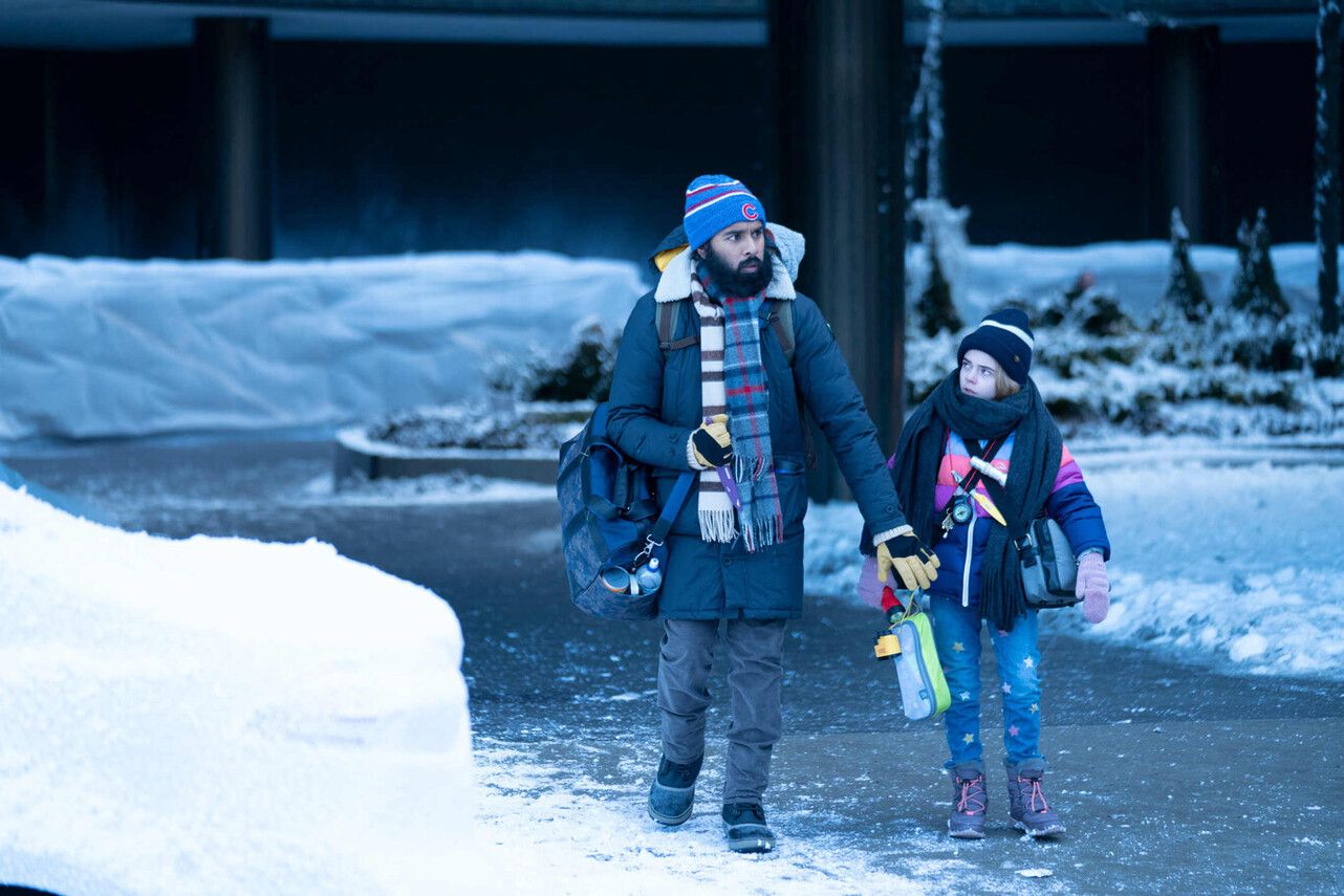 La narrativa se construye en tres líneas temporales: el colapso, los primeros años posteriores y el presente veinte años después. Ese vaivén permite comprender cómo los traumas, las lealtades y los fragmentos de identidad viajan con nosotros incluso cuando todo lo demás se derrumba. En ese pasado inicial sobresale Jeevan (Himesh Patel), una figura esencial para Kirsten, y el vínculo que ambos comparten funciona como pulsación emocional de toda la historia.