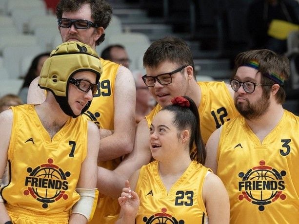 El equipo, llamado The Friends, está interpretado por actores con discapacidad intelectual, decisión que le da a la película una autenticidad vibrante. No son personajes a los que haya que “salvar”. No son excusa narrativa. No son protagonistas simbólicos. Son personas completas, con humor, rabia, ambiciones, habilidades reales para el baloncesto y un sentido del compañerismo que deja a Marcus —y a nosotros— sin argumentos. Ellos no necesitan que él los transforme: es él quien necesita un cambio de vida.